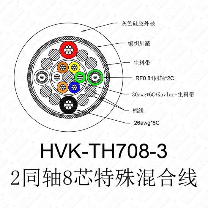 2同軸8芯特殊線硅膠灰色